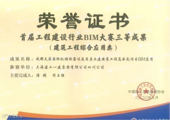 2020首届成都市建设工程“蓉信杯”BIM技术应用大赛综合组二等奖
