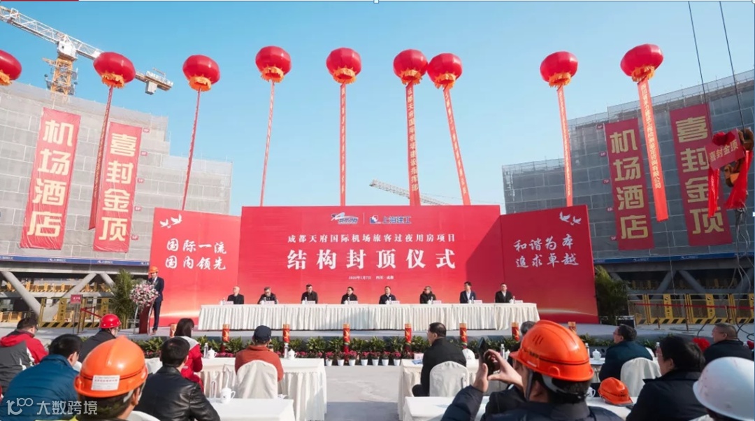 2021年6月18日下午,成都天府国际机场旅客过夜用房项目举行竣工仪式。四川省机场集团有限公司总经理、天府国际机场建设指挥部指挥长潘刚军,四川省机场集团有限公司副总经理、天府国际机场建设指挥部党委书记张喜成,上海建工集团副总裁王志刚等领导出席本次仪式。