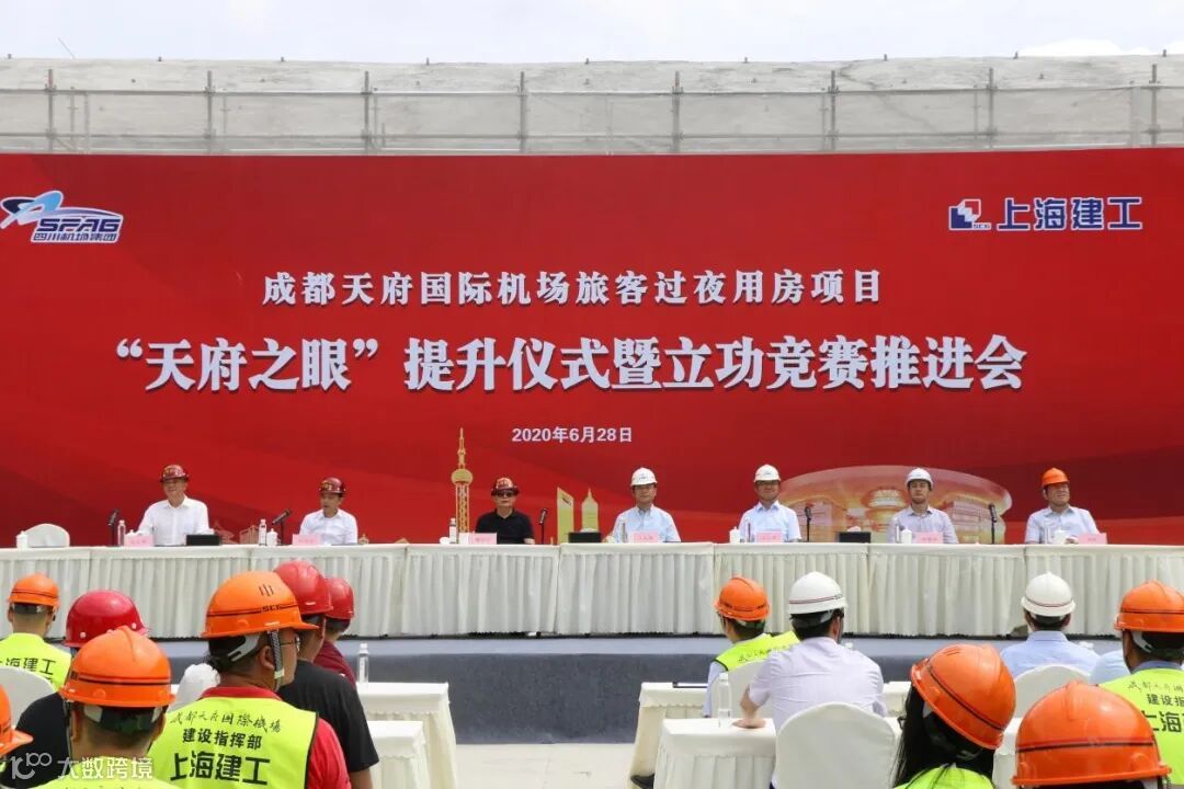 成都天府国际机场作为四川省一号重点工程是丝绸之路经济带中等级最高的国际航空枢纽之一,成都天府国际机场旅客过夜用房项目由上海建工总承包,一建集团负责实施,由一座五星级酒店、一座次高星酒店及其合围的两层公用裙房构成,素有“天府之眼”的美称。