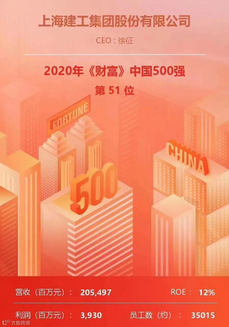进击的上海建工!2020年《财富》中国500强排名第51位