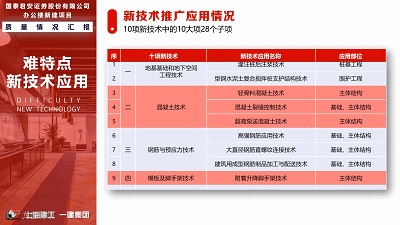国泰君安证券股份有限公司办公楼新建项目施工过程中先后推广应用了建设部十项新技术中的10大项28个子项, 形成专利13项,其中发明专利5项,实用新型专利8项。