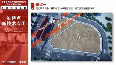 1.周边环境复杂,基坑位于地铁隧道上盖,施工变形控制要求高