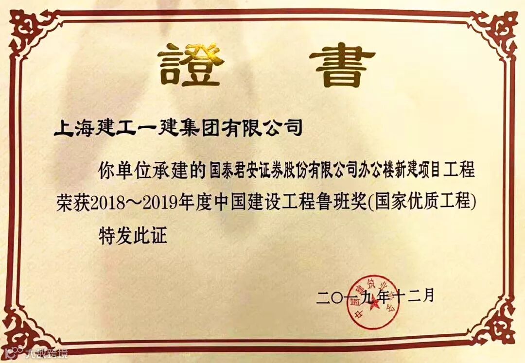 国泰君安证券股份有限公司办公楼新建项目先后获得过上海市优质结构、上海市文明工地、上海市明星工地、上海市建设工程“白玉兰奖”、上海市绿色样板工程、上海市优秀设计奖等荣誉。