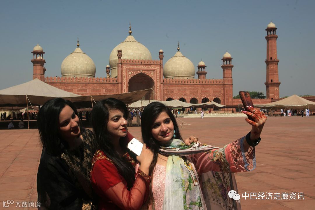 在拉合尔,几名姑娘在做完开斋节祈祷后开心地玩自拍