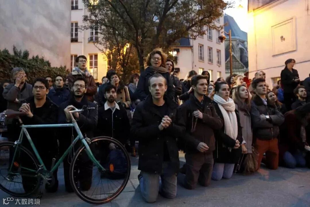 目击者纷纷跪在地上为巴黎圣母院唱颂祈祷