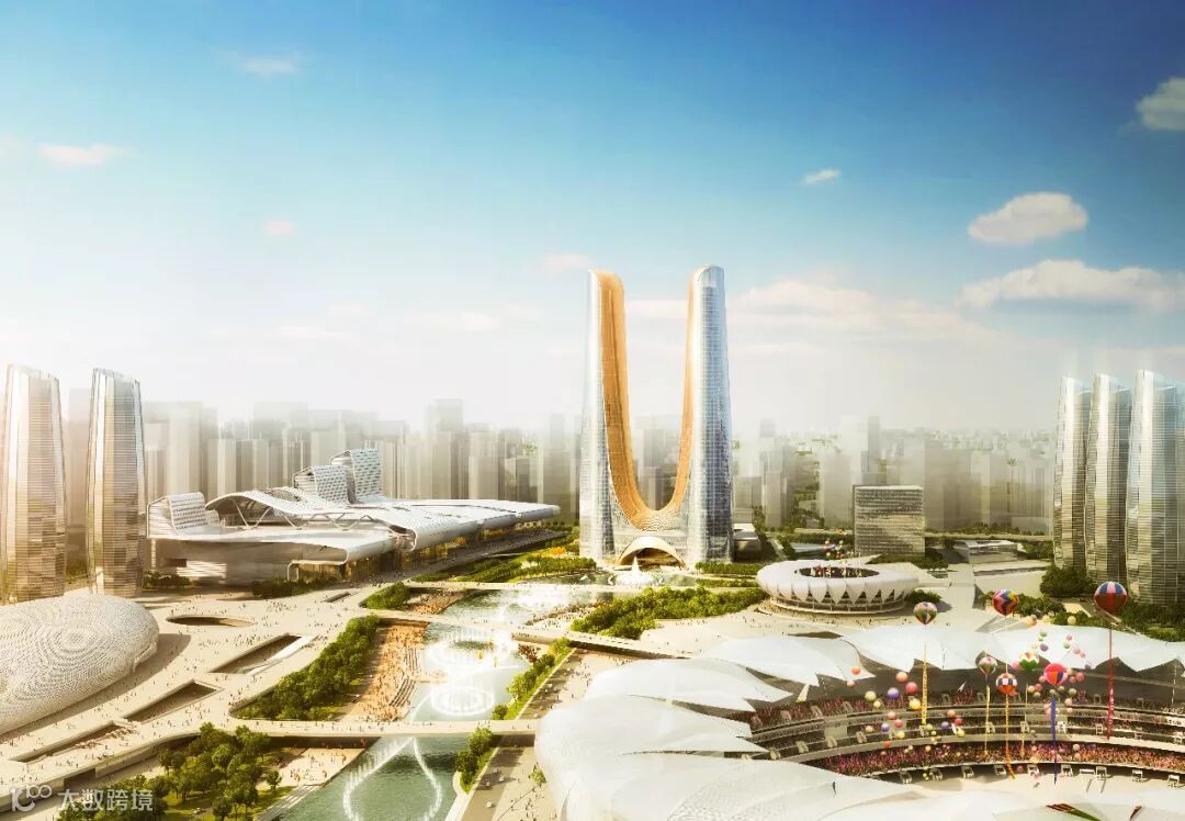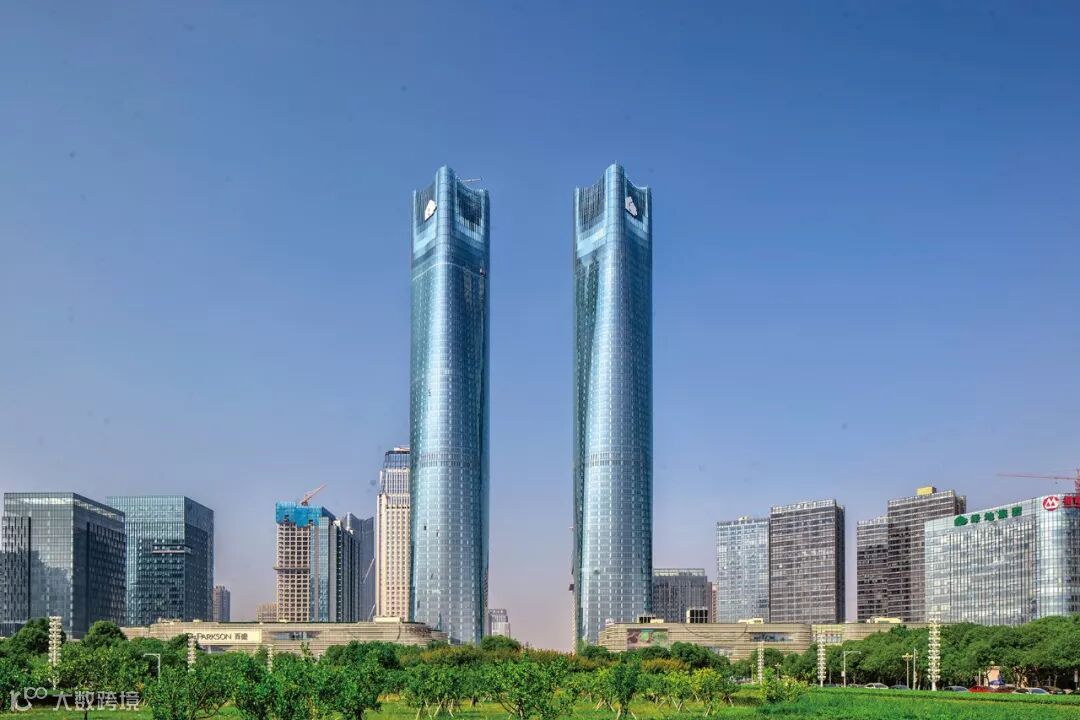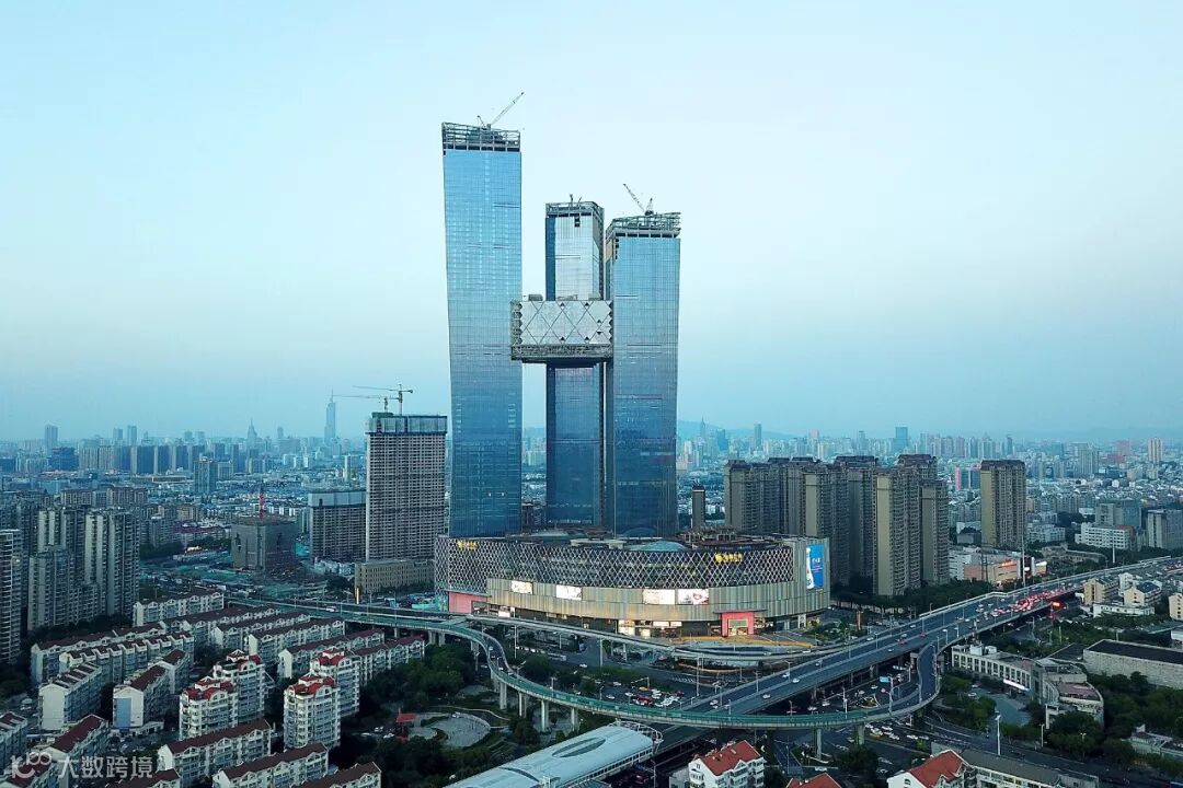 全球在建的高度最高、连体跨度最大的非对称三塔连体——南京金鹰天地广场(最高塔楼368米)
