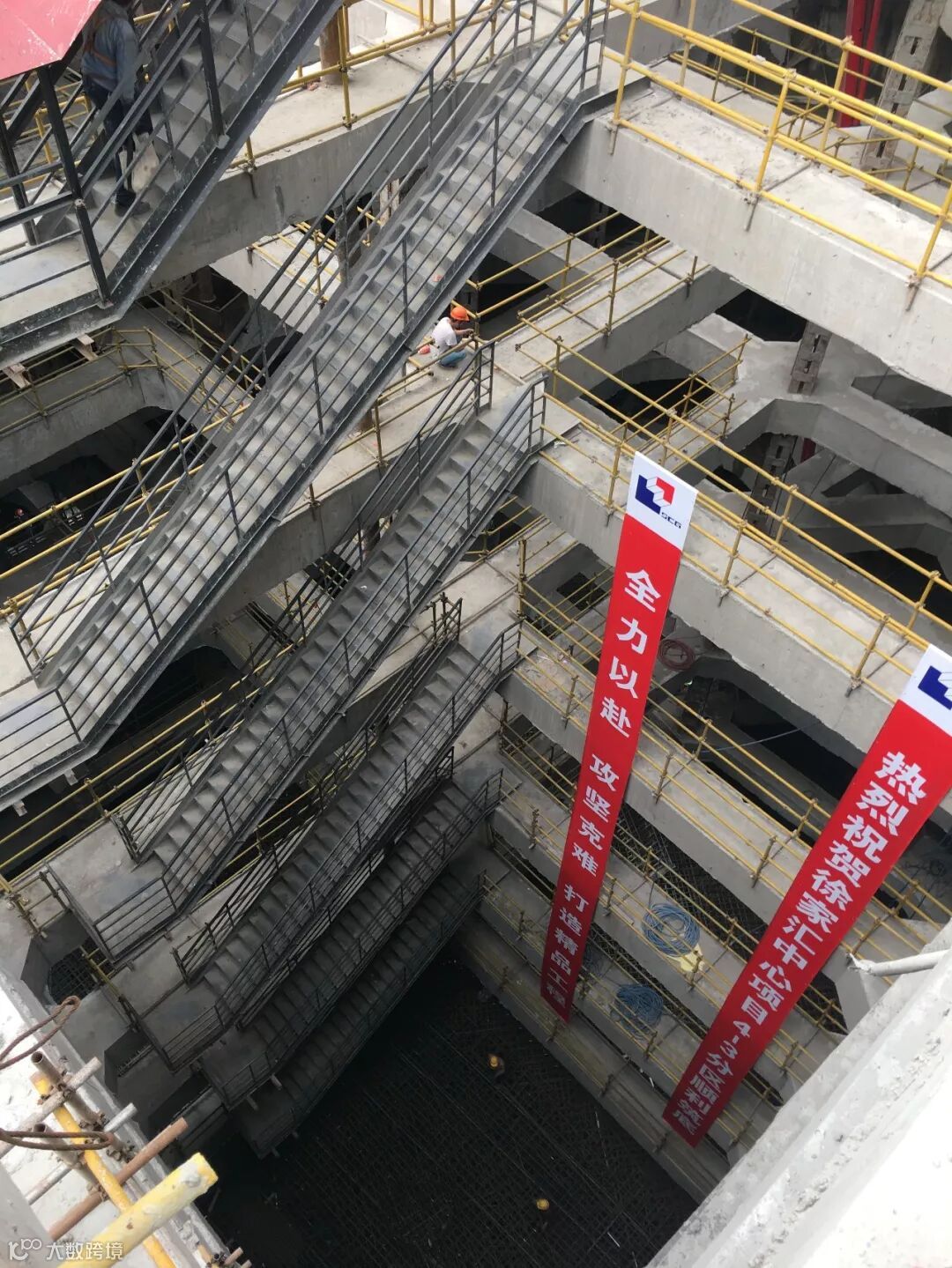 “安全责任重于泰山”,无论有多困难,安全责任一丝一毫都不能松懈。针对紧邻地铁站以及超深基坑施工的双重困难,除了将65年来积累的技术经验作为有力支撑之外,“建设先锋”还采取了最直接也是最有效的方法,那就是“快”。正所谓“天下武功,唯快不破”,从3月初土方开挖开始,项目部便精细策划、精心组织,将现场管理人员分为两组,日夜交替,24小时连续奋战,创出了9天一层土的惊人速度。正是由于增加了开挖速度,从而减少了基坑暴露时间,承压水的降水周期也同步减少,保证了基坑的安全施工。