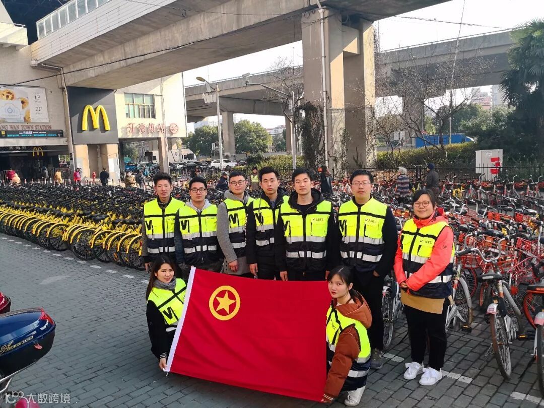 第一工程公司组织开展"弯腰扶起文明"活动,前往就近地铁站,整理共享单车。