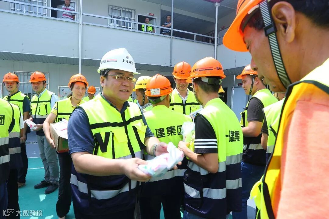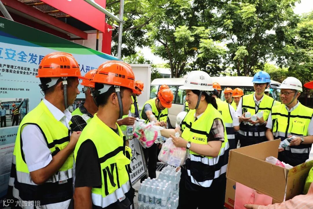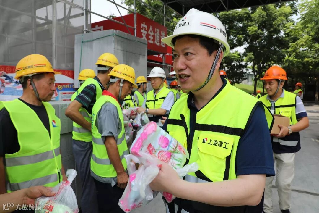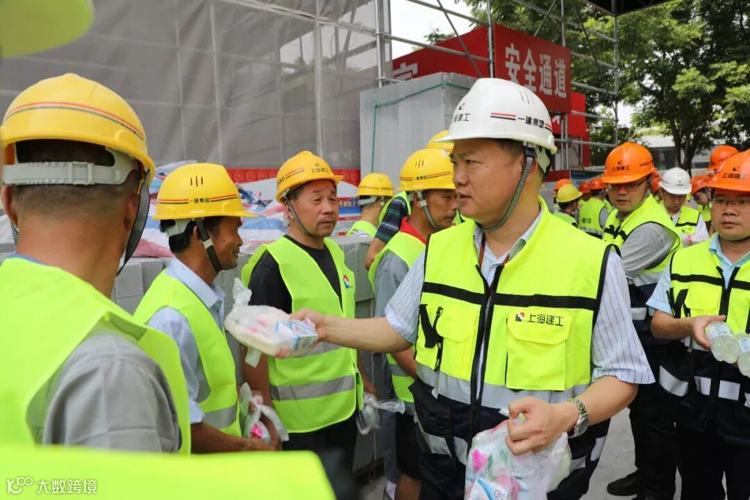 7月25日,集团党委书记、董事长徐飚,党委副书记、总裁俞建强等领导前往徐家汇中心虹桥路地块、五里桥、青松城综合修缮、复旦大学附属肿瘤医院、上海科技大学、飞机研究所科研楼等项目开展高温慰问,向奋战在项目一线的建设者送上盐汽水、毛巾等防暑降温用品,并一再叮嘱广大建设者注意做好防暑降温工作,注意安全生产,确保平安度夏。