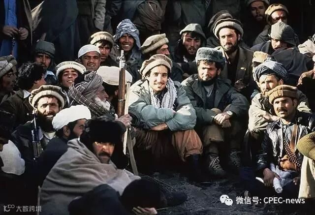 1984年,阿富汗东北部,坐在画面中间的是阿富汗游击队领袖艾哈迈德·沙阿·马苏德,由于反对本拉登,2001年9月遭塔利班暗杀,几天后发生了震惊世界的911事件。摄影:美联社/Jean-Luc