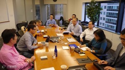 (图为与大赛组委会及海外创新企业交流大赛筹备工作)