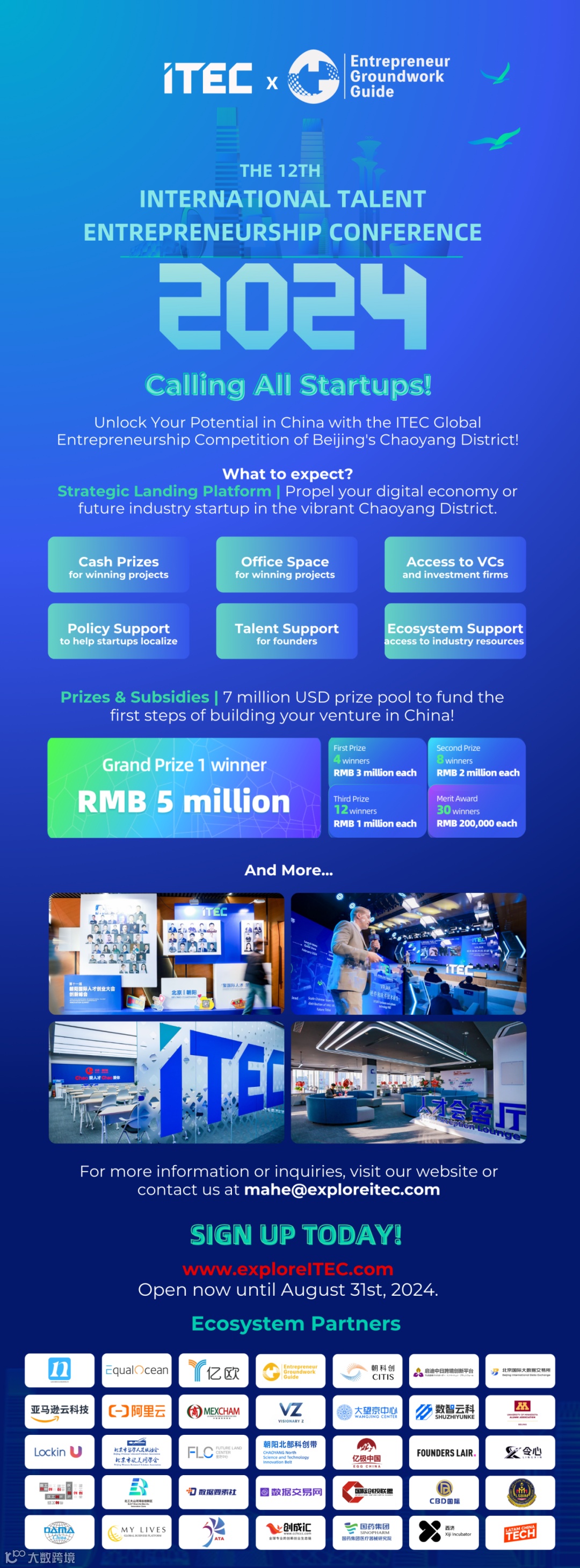 🌟与来自世界各地的顶尖创新者竞争,在北京蓬勃发展的生态系统中获得独家机会,包括高达500万元人民币的现金奖励、办公空间和全面支持。不要错过——这是您在中国脱颖而出的机会!