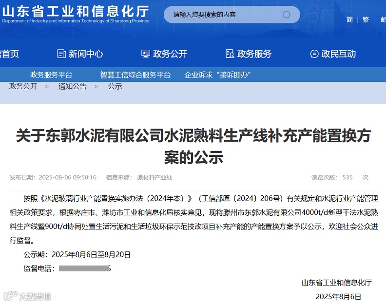 刚刚,山东工信厅发布一则熟料线补充产能置换方案,潍坊鲁元建材公司日产2500吨熟料产能指标按照2:1的比例转让给滕州市东郭水泥公司日产4000吨熟料线做产能置换!