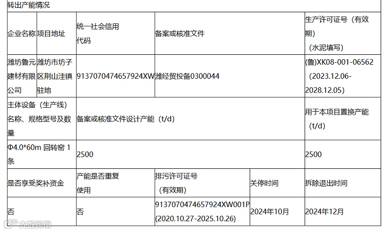 但是,潍坊鲁元建材公司的拆除时间是2024年12月份,已经淘汰的产能怎么还能进行产能置换呢?