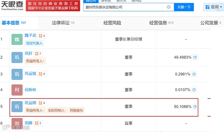 对于东郭水泥,也不是等闲之辈呀,拥有水泥厂、商混站,实力相当厉害,关键该公司控制人巩运刚还是枣庄市人大代表!