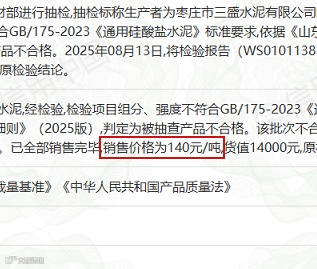 近日,台儿庄区市场监督管理局公布行政处罚决定(枣台市监处罚(2025)195号),枣庄市三盛水泥有限公司因生产的矿渣硅酸盐水泥质量不合格被依法查处。