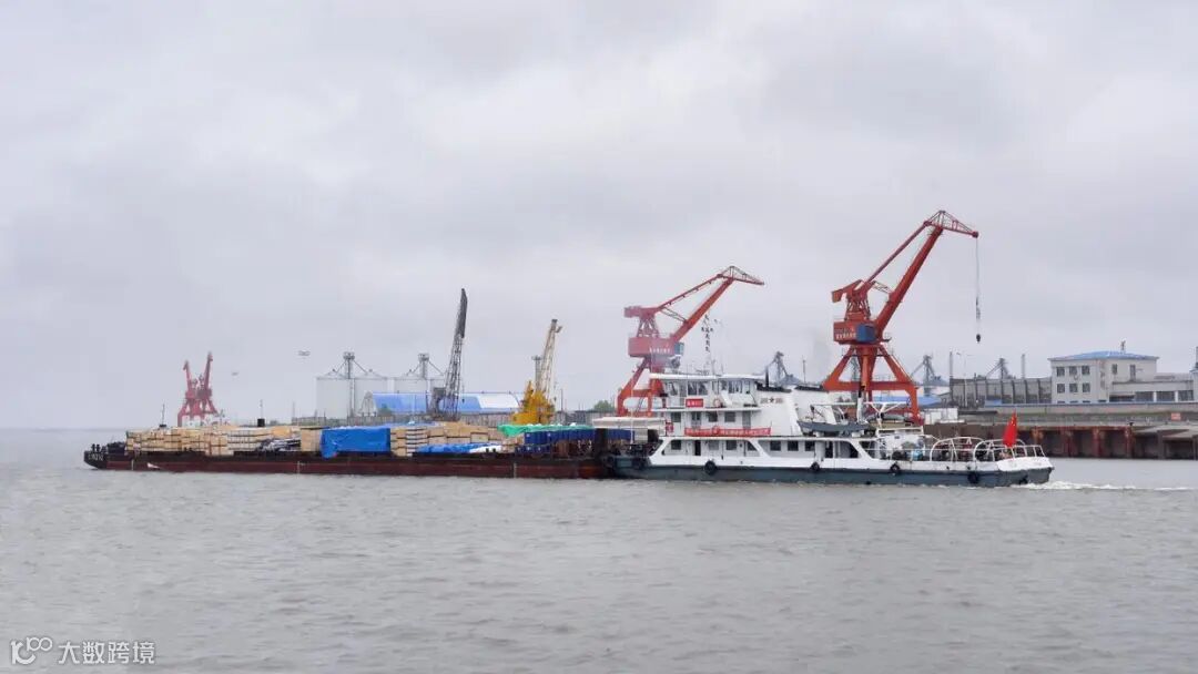 在同江口岸西部作业区水运码头,海关、边检、海事等联检部门协同作业,对即将出航的货运船只进行全面细致检查,确保航行安全与通关顺畅。15时48分,装载着建筑材料、工程机械等货物的千吨级驳船划破江面,正式开启今年首航运输。