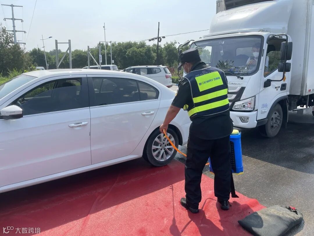 百利威园区对出入园区的车辆,由工作人员完成测温并对全车进行消杀后放行。