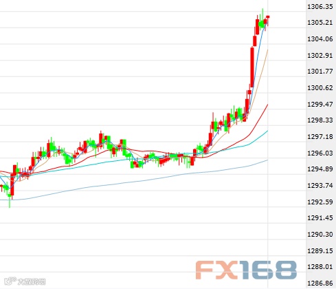 现货黄金短线拉升约7美元,升穿1300美元关键水准,刷新日高至1306.56。