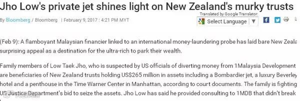 根据“彭博社”报导,刘特佐家族成员被美国司法部怀疑,通过新西兰信托人持有2亿6500万美元的资产,是挪用自一马发展公司(1MDB)的资金。这些资产包括庞巴迪喷射机、位于美国比弗利山庄的豪华酒店和曼哈顿时代华纳中心顶楼公寓。