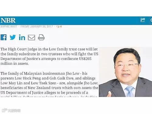 法官说,新西兰信托人管理的资产,只是刘氏家族受美国司法部寻求充公资产的一部分,刘氏家族也必须担心他们在新加坡的资产。