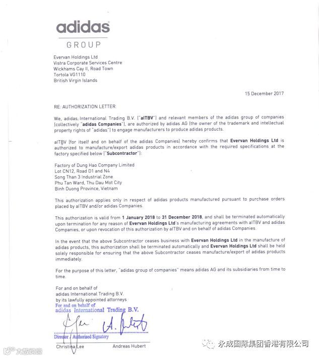 10月14日,永成集团旗下的越南永好有限公司 成为越南境内首家获得adidas T1.5认证的工厂! 这一创举让所有永成人都十分骄傲与自豪!