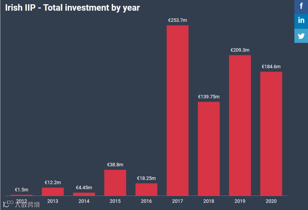 自2012年爱尔兰投资居留计划项目推出以来,每年通过IIP募集的金额如下表: