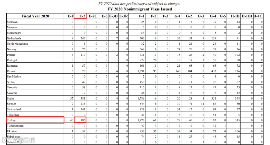 (2020年土耳其公民的E2签证获批数量为186个,