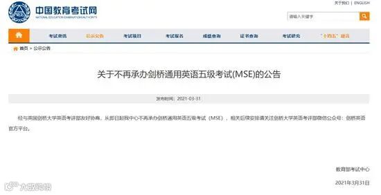 近日,教育部一则不再承办剑桥通用英语五级考试的消息,让所有鸡娃家长心碎了一地。据了解,剑桥通用英语五级考试包括近来颇受社会关注的KET、PET、FCE等考试。