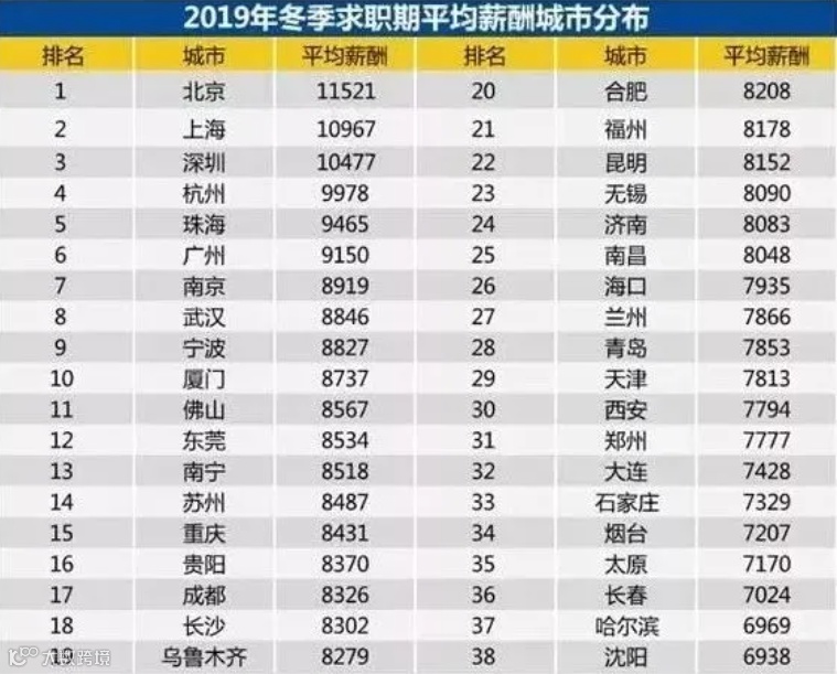 对比下图2019年国内各个城市冬季平均薪酬就能看出差别,欧洲的工资普遍要比国内一线城市要高,虽说欧洲一些国家物价相比国内要高,不过在高薪的支撑下,还是可以过得很滋润的。