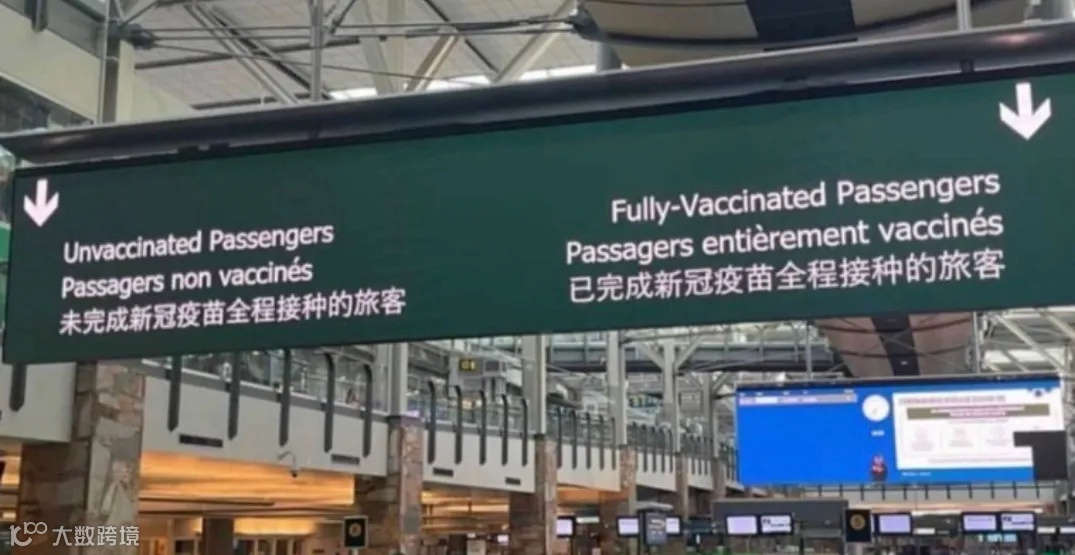 入境变化:目前在海关大厅里,有两种排队方式,一种是接种疫苗的乘客,一种是未接种疫苗的乘客。根据加拿大政府的指示,从美国或其他国际目的地进入加拿大的乘客,在到达加拿大海关前被分成完全接种疫苗和未接种/部分接种疫苗的队伍。