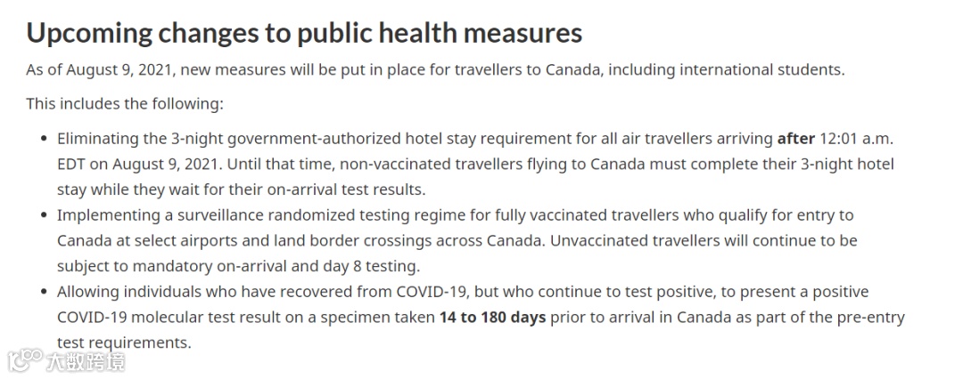 从加拿大东部时间8月9日 12:01 AM起,取消搭乘飞机入境旅客的3天政府强制酒店隔离政策,包括国际留学生在内。但是!目前所有搭乘飞机入境人士仍需要有必要理由,且必须在入境时提供隔离计划及做好入境后的隔离准备。