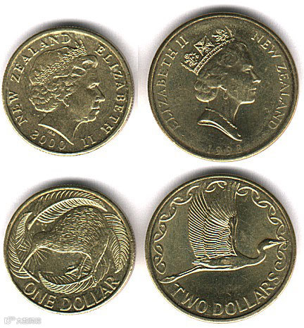新西兰1元和2元硬币则分别刻画了最受新西兰人欢迎的动物——几维鸟和白鹭。几维鸟是新西兰的“国鸟”,其名字常常被用来代指新西兰;白鹭是生活在新西兰南岛西海岸奥卡里托泻湖的稀有物种,被毛利人奉为神鸟