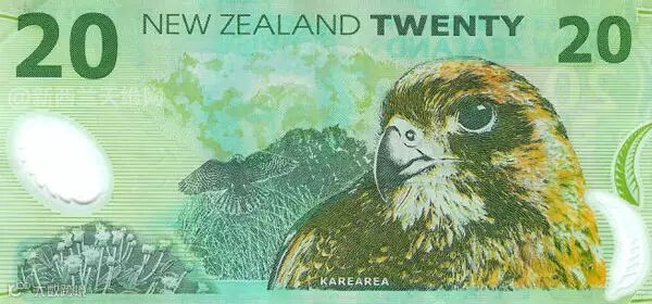20元纸币背面则是新西兰猎鹰的雄姿,新西兰人称这种动物是山谷中“孤独的猎食者”。