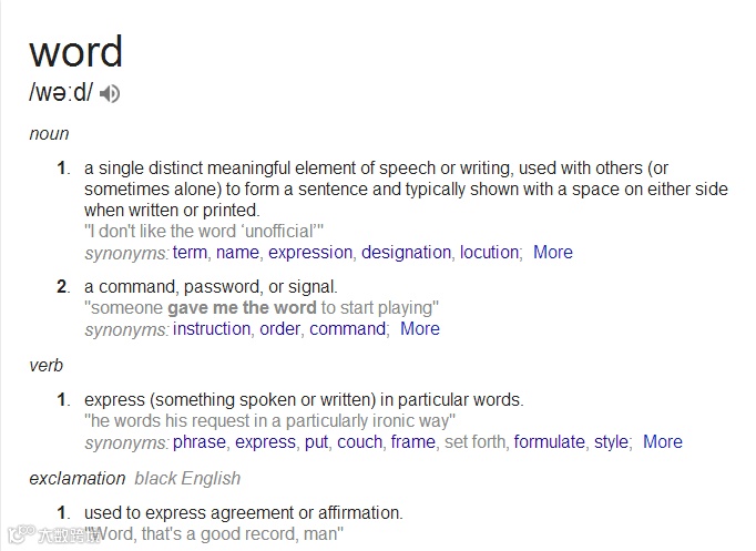 想要获得词语的释义不是只能翻自典,在 Google 的搜索框里输入「define word」也同样能做到。例如输入「define tintinnabulation(定义 tintinnabulation)」,它会告诉你这代表一种叮叮当当的声响。