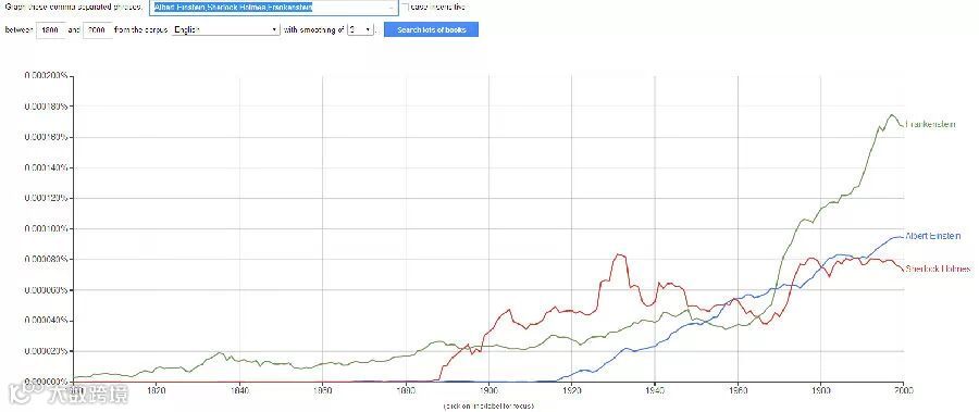 Google全球书籍词频统计器是个神奇的搜索工具,它可以告诉你任意词语从 1800 年开始在 500 多万本书中出现的次数。这个功能可以用来分析一个词语的使用频率在时间里的走向。
