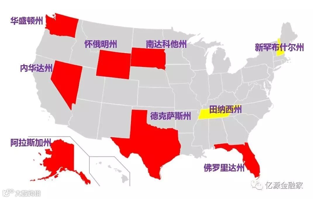 *另外田纳西州和新罕布什尔州对个人工资收入不收税,但却对除工资收入的其它收入征税。