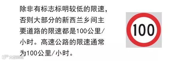 新西兰各地使用不同的时速限制——要经常观看时速限制标志。为保证安全驾驶,车辆行驶时的速度不仅要遵照时速限制标志的规定,有时也要视路况、天气和车流状况等需要降低车速。