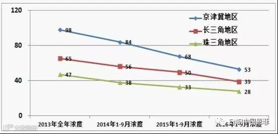 2017年,京津冀、长三角、珠三角等重点区域绿色发展水平有望进一步提升。根据环保部发布的监测数据,2013年以来,京津冀、长三角、珠三角等区域的PM2.5浓度均保持明显的下降态势,与2013年相比,三个区域2016年1-9月PM2.5浓度从98μg/m³、65μg/m³、47μg/m³下降到53μg/m³、39μg/m³、28μg/m³,降幅为分别为47%、40%和40%。随着《大气污染防治行动计划》、《工业绿色发展规划(2016-2020)》的全面落实,我国重点区域绿色发展水平有望进一步提升。同时,我国各地区能源消费走势分化越来越明显。2016年1-10月,全社会用电量增速高于全国平均水平(4.8%)的省份有14个,主要包括西藏(19.9%)、新疆(11.9%)、安徽(9.5%)、陕西(9.5%)、江西(9.3%)、浙江(8.4%)等;全社会用电量负增长的省份有4个,其中甘肃省增速为-5.6%。