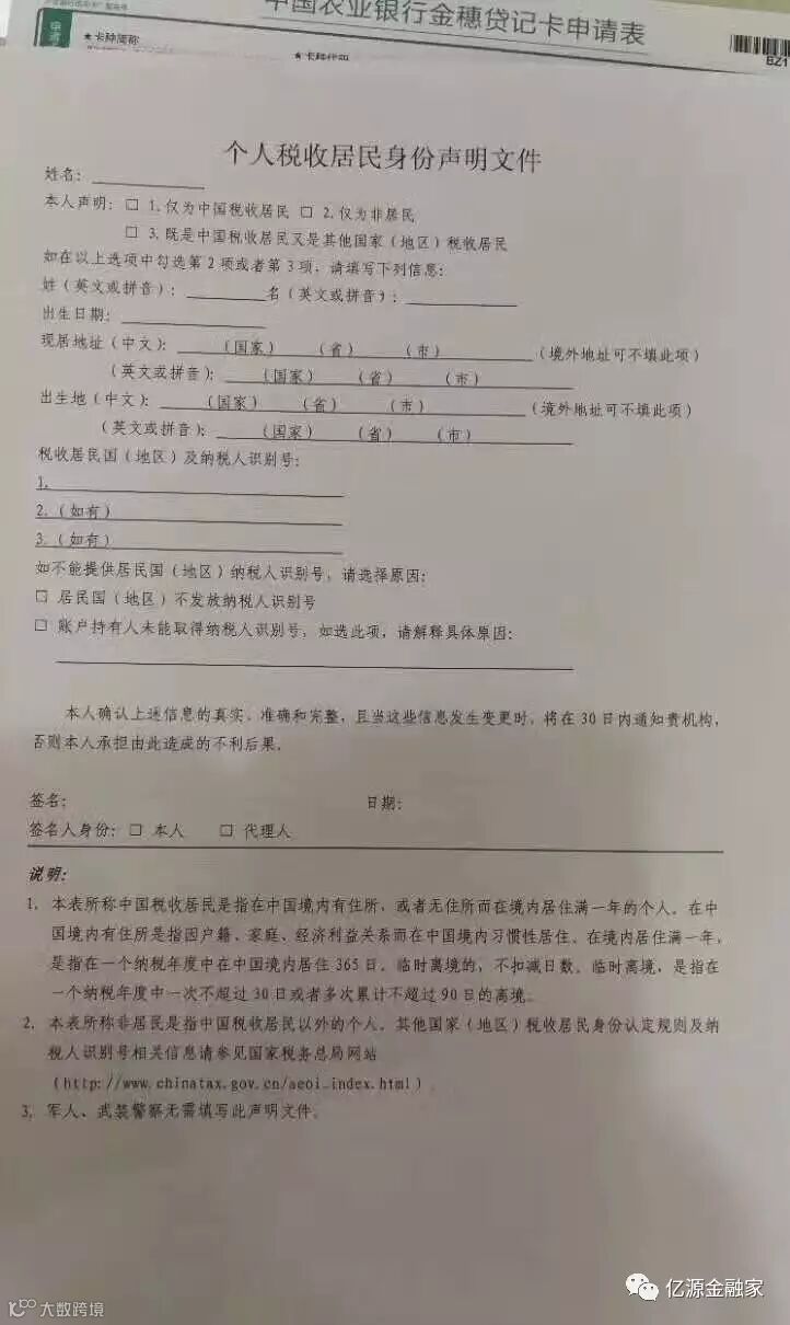 7月1号开始你去银行开户,是不是客户经理已经要求你填写了这张表?