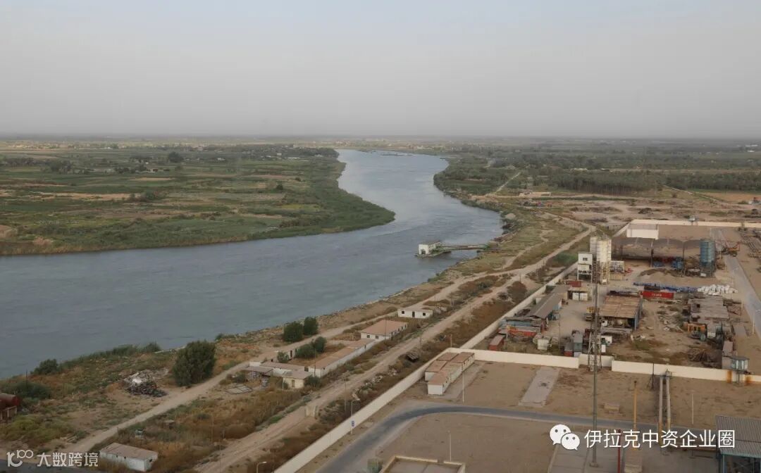 伊拉克瓦西特省拍摄的华事德电厂和旁边的底格里斯河。