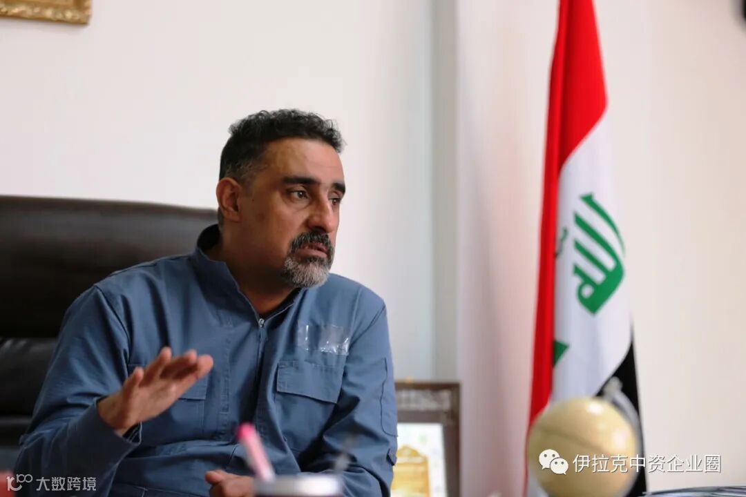 在伊拉克瓦西特省,华事德电厂总工程师阿里·艾哈默德接受采访。