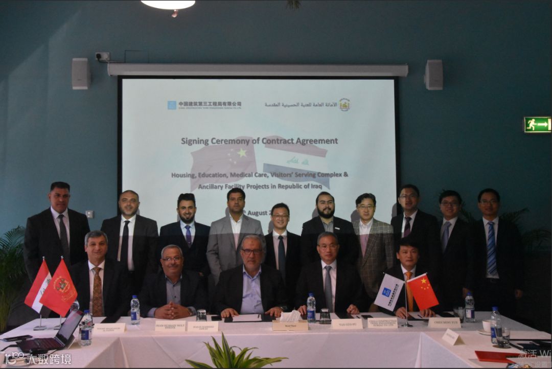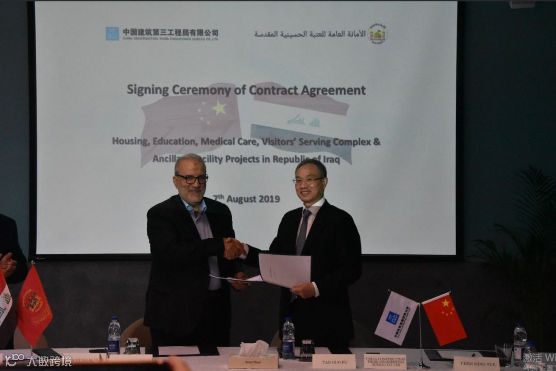 中建三局总经理助理谭国富与伊拉克IHHS秘书长Jawad分别代表双方签约。