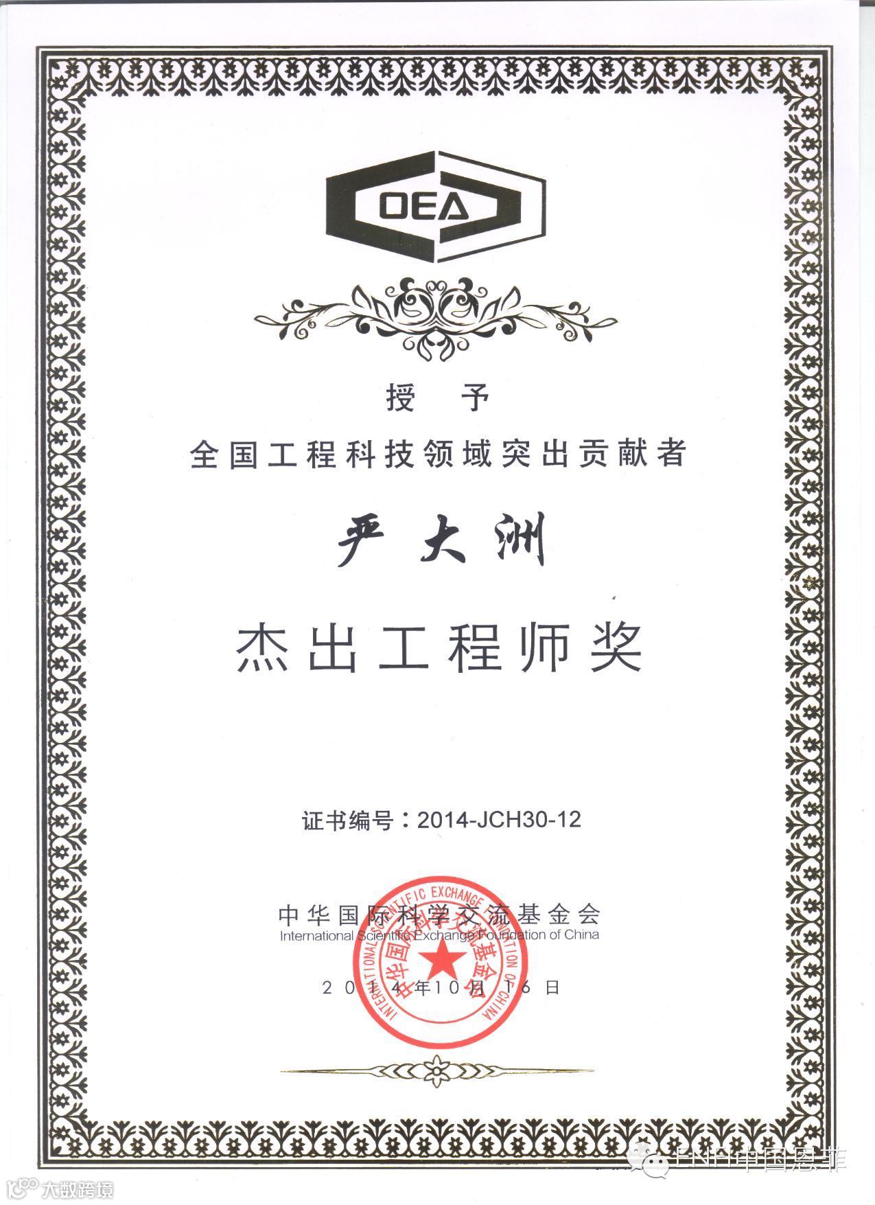 10月26日晚,中央电视台播出了中华国际科学交流基金会(以下简称“科基会”)首届杰出工程师颁奖典礼(在线观看地址:http://tv.cntv.cn/video/VSET100208707156/70ee518db2534e038cd9ac4413049170),中国恩菲副总工程师、稀有金属及硅材料设计研究中心主任严大洲获颁“2014年杰出工程师奖”。