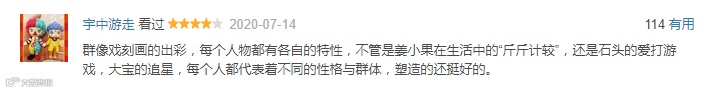 ▲网友#宇中游走#:群像戏刻画的出彩,每个人物都有各自的特性,不管是姜小果在生活中的“斤斤计较”,还是石头的爱打游戏,大宝的追星,每个人都代表着不同的性格与群体,塑造的还挺好的。