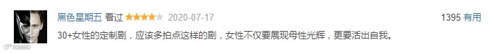 ▲网友#黑色星期五#:30+女性的定制剧,应该多拍点这样的剧,女性不仅要展现母性光辉,更要活出自我。