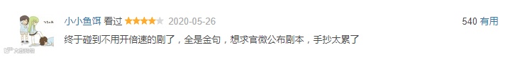 ▲网友#小小鱼饵 #:终于碰到不用开倍速的剧了,全是金句,想求官微公布剧本,手抄太累了。