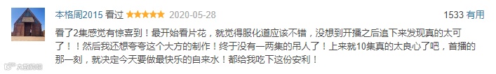▲网友#本格周2015#:看了2集感觉有惊喜到!最开始看片花,就觉得服化道应该不错,没想到开播之后追下来发现真的太可了!!然后我还想夸夸这个大方的制作!终于没有一两集的吊人了!上来就10集真的太良心了吧,首播的那一刻,就决定今天要做最快乐的自来水!都给我吃下这份安利!