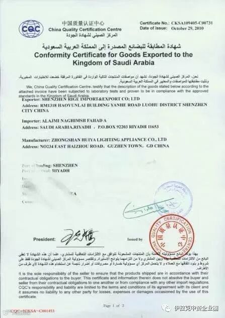 6:如收货人为伊拉克国有公司(非石油),企业需提交两种辅助材料,即合同复印件和符合性证书(COC或COI),无需提交进口许可证;
