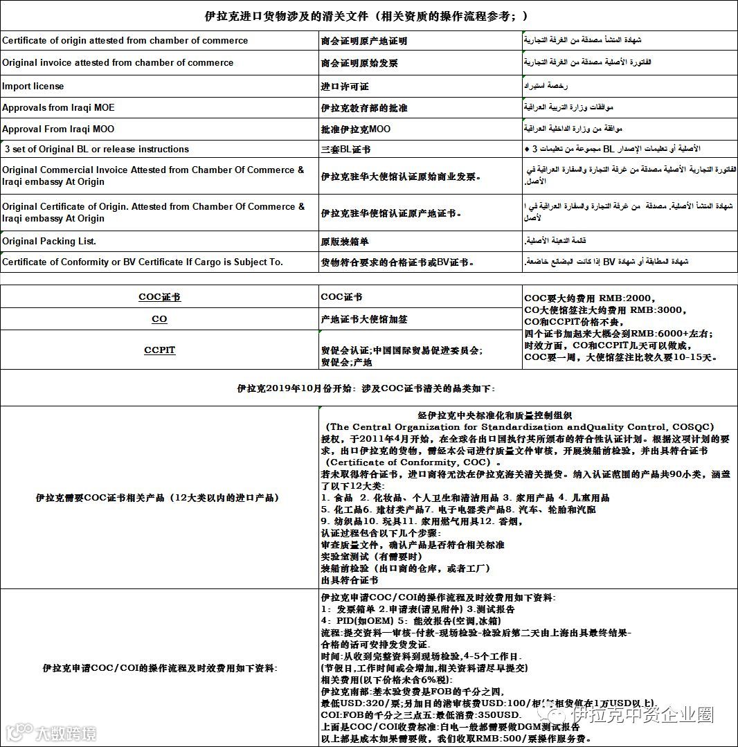 现在伊拉克的国家货物进口涉及的文件资质越来越多;